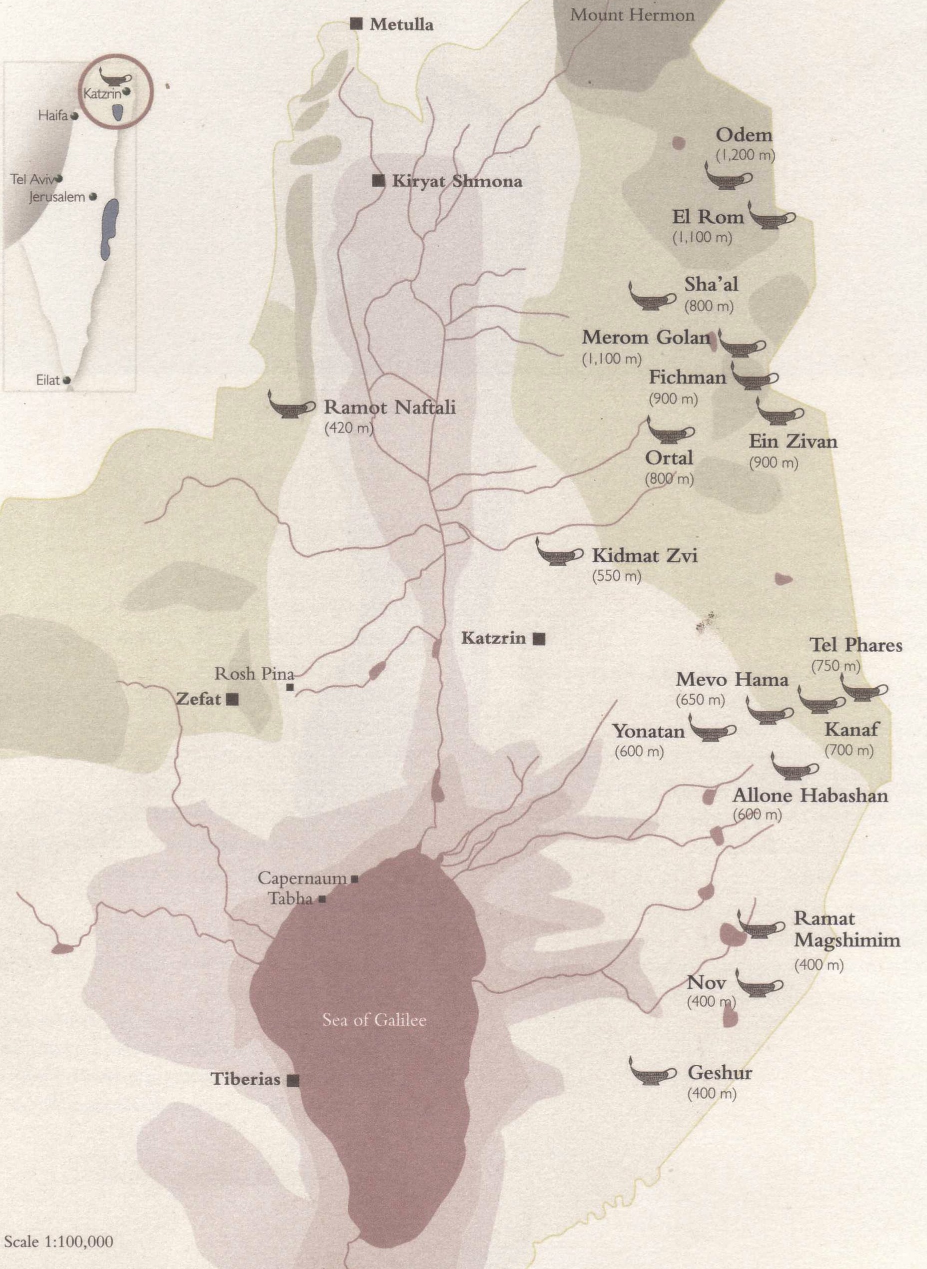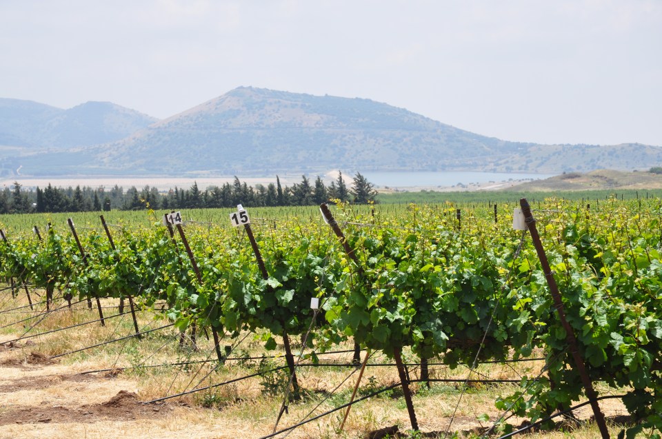 We visited vineyards on the Golan, one growing in a caldera, a large crater caused by the violent explosion of a volcano that collapses into a depression. The caldera creates a different micro climate from the surrounding area. We visited an organic vineyard at Odem and learned about how the growers control aphids and grapevine fan leaf virus using natural methods. We visited vineyards growing around Tel El-Makhfi right beside abandoned Syrian bunkers. The Golan Heights Winery has 16 vineyards on the Golan and 1 in the Galil.