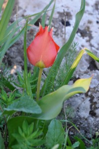 On the same trip I came across red tulips (Tulipa montana) a member of the lily family growing on the hill overlooking the Sea of Galilee above Ein Gev.