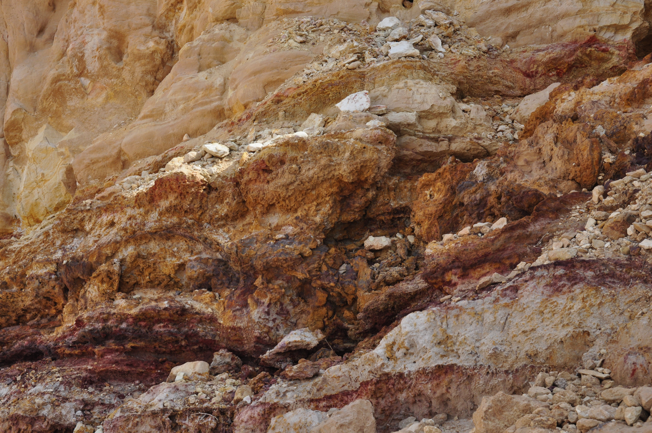 The following photos of the multicolored, textured sandstone were taken while hiking in the makhtesh, abstract paintings by the hand of God.