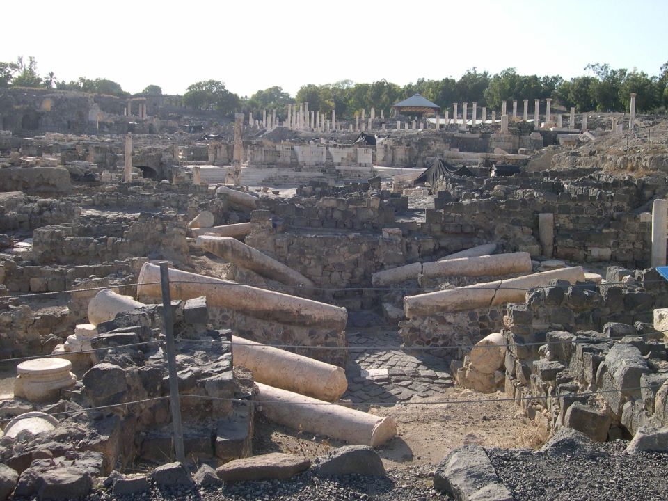Bet Shean situated at the junction of the Jordan River valley and Nahal Harod that connects to the Jezreel valley, is an important crossroads because it controls access from the interior to the coast and from Jerusalem to the Galilee. It was called Scythopolis from the Hellenistic period onward and according to Greek mythology was founded by Dionysus. In 63BCE it was conquered by the Roman general Pompey and made a part of the Decapolis, a loose confederation of ten cities that were centers of Greco-Roman culture. It was the largest city according to Josephus and only one west of the Jordan River and is mentioned several times in the New Testament (Matt 4:25; Mk 5:20). This was the period of Pax Romana and the city prospered, evidenced by a high-level of urban planning and extensive construction the remains of which can be seen today in the archaeological park.
