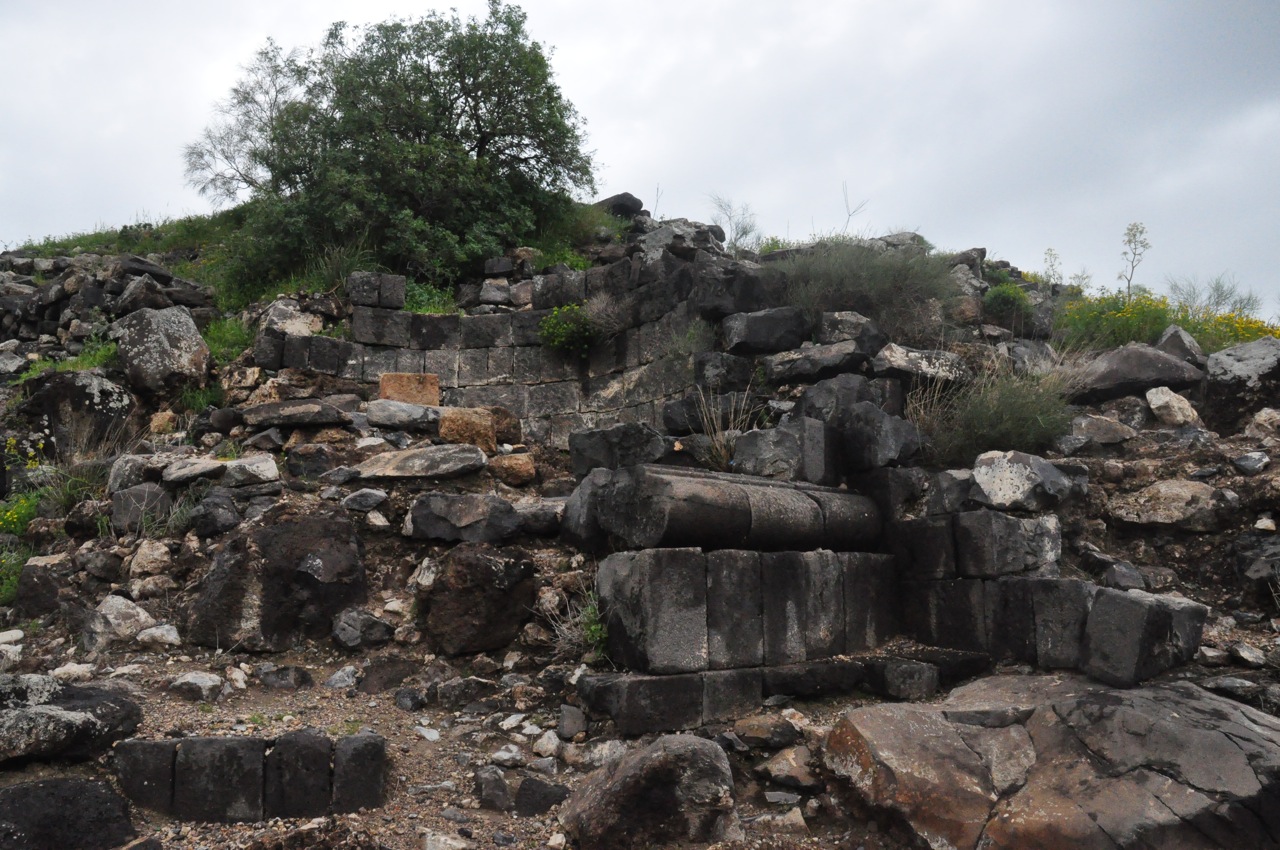 As you walk up the path towards the site the first thing you come to is the east gate. It had a tower on each side, one round and one square – a unique feature (most towers are the same). The round tower is well built of accurately cut basalt stones laid without the use of mortar. The square tower is poorly formed and preserved, and seems to have been repaired with cement at a later stage.