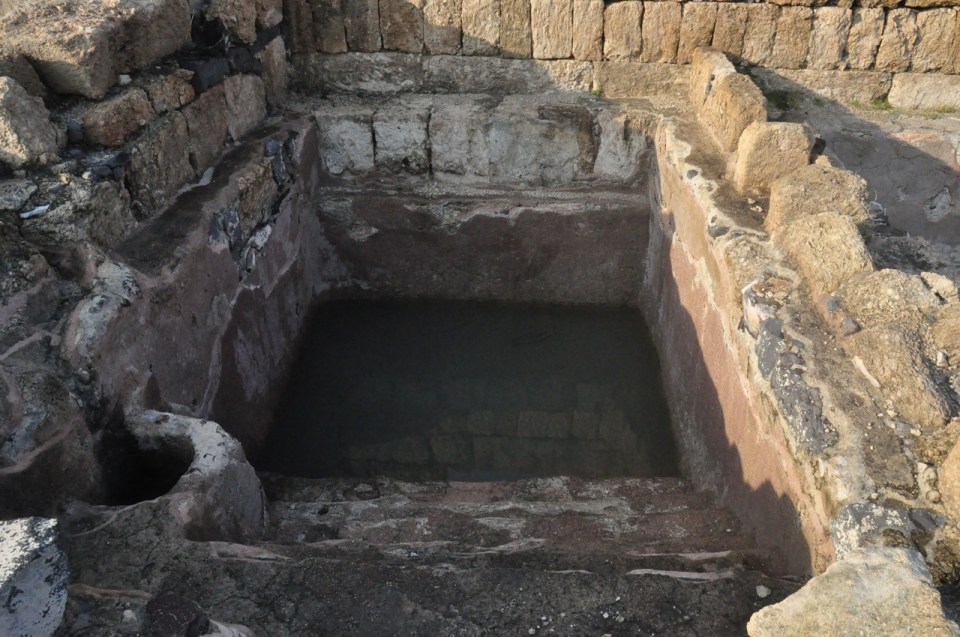 Originally Sussita collected its water from rainfall that was stored in a large underground vaulted cistern 9 meters deep at the western end of the city; smaller cisterns have been uncovered under other buildings. When this was insufficient for the needs of the growing city the Romans built an aqueduct starting from the waterfall in Nahal El-Al (btw this is a great hike) about 25 kilometers away. The problem was how to get it across the valley and up into the city. The Romans engineered a pipe made up of interlocking stone rings, made airtight with caulking, in which the water flowed down into the valley and then was drawn up into the city by siphonic action (like sucking a hose to siphon gas from your tank into a container) – the first time in this region.
