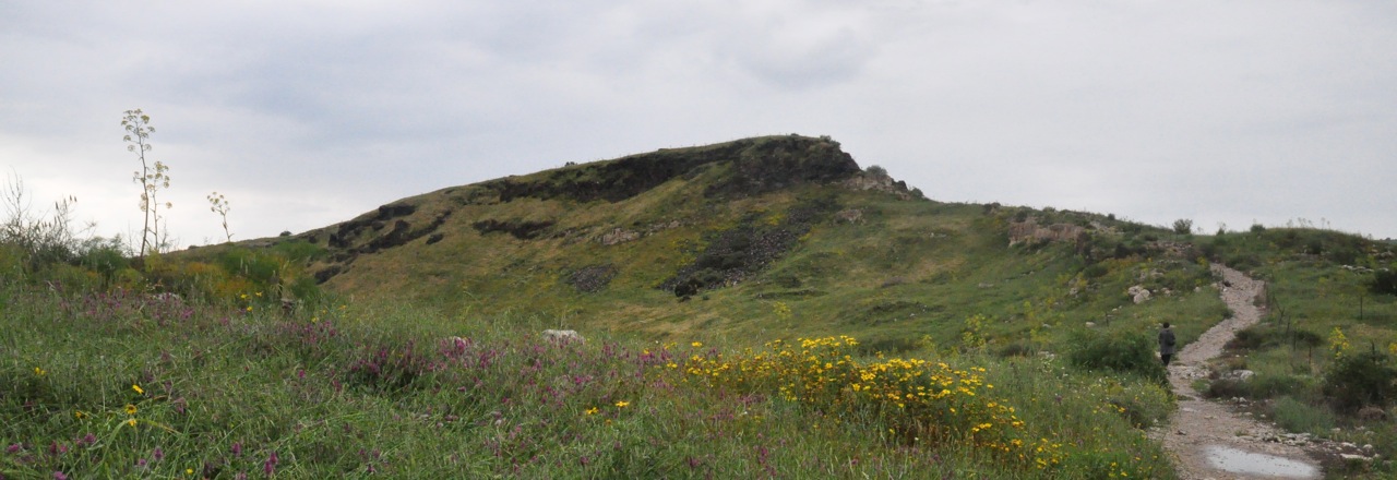 To the east of the Sea of Galilee across from Kibbutz Ein Gev is a road off the main highway <92> that passes beside a field of banana plants and winds its way onto the Golan plateau just south of Afik. About halfway, to the left of the road is a hill and on its summit (350 meters above the lake) the remains of the Byzantine city of Sussita (known as Hippos in its earlier Hellenistic incarnation).