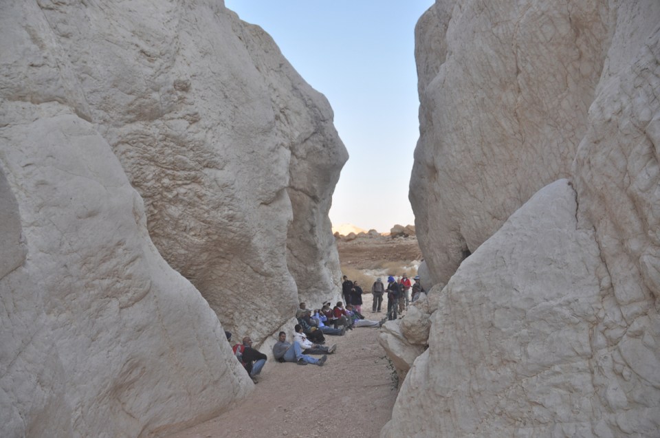 There are two access points into the makhtesh, Maale Hatzera on the northern wall is more gentle, an ancient camel pass and Maale Eli. We started our hike from Maale Eli a route originally discovered by local Bedouin that traverses the steep limestone (from the Cenomanian epoch 100 million years ago) walls of the makhtesh connecting the floor of the makhtesh with Hatzera Ridge. I’ve heard various reasons for the name – Eli means upper from the same root as ascend; Eli means pestle to the bowl-shaped mortar of the makhtesh. In fact, it is named after Eli Ben Zvi, son of Rahel Yanait and Yitzhak Ben Zvi who was the second president of Israel. Eli was wounded during a training exercise with the Palmach in the makhtesh in the 1940s and this ascent was discovered in evacuating him to the nearest road joining Beersheva to Maale Aqrabim, the Scorpion Ascent built by the British. Like Masada the Makhtesh HaKatan became a symbol of knowing the desert and the land of Israel by a people who had come home after 2000 years of exile.