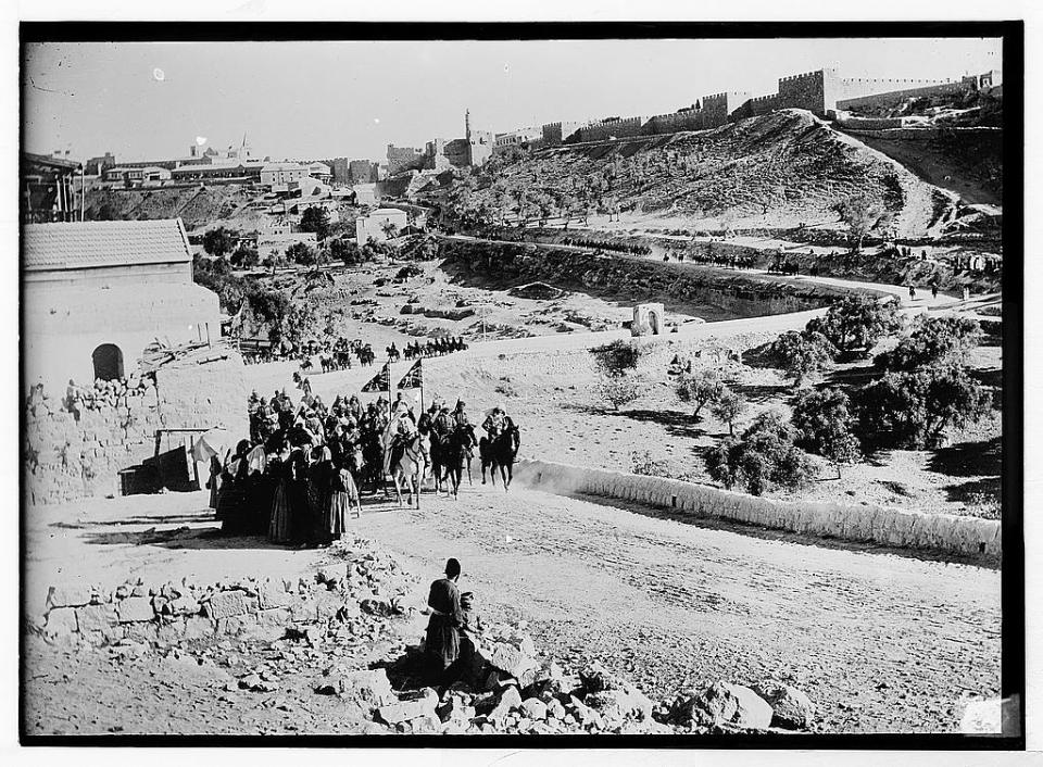 Elijah Meyers founded the American Colony Photo Department in 1898 (though some photos are earlier). Meyers, who emigrated from India, was a Jewish convert to Christianity. 1898 was the year of the German Kaiser Wilhelm II and Augusta Victoria’s visit, an auspicious start to the photographic enterprise as people were interested in photos of the visit.
