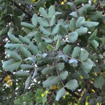 Tabor oak (Quercus ithaburensis) is a deciduous tree that may reach a height of more than 10 meters. A famous group of large, old oaks can be seen at Hurshat Tal. Eurasian Jays (Garrulus glandarius) like to eat the acorns and bury some in the soil as a cache, which turns out to be the proper depth from which they can germinate and grow into a new oak.