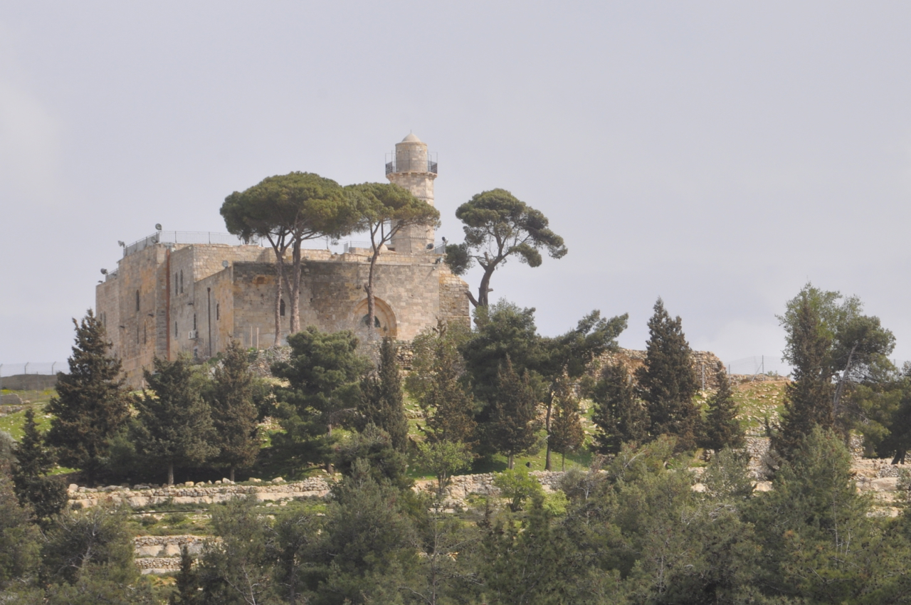 Overlooking the ancient route from Beit Horon to Jerusalem (today highway <436>) is a tree-covered, limestone mountain (885 meters high) that gets its name from the Hebrew prophet Samuel who according to Judaism, Christianity and Islam is buried there. Another tradition, supported by archaeological evidence, is that this site is Mizpeh, where Samuel anointed Saul, the first King of Israel and where King Solomon made a thousand burnt offerings at the high-place of Gibeon – the biblical city of Gibeon is only 1.5 km north of the site, today the Palestinian village of el-Jib, behind the separation wall. Excavations, still ongoing, have uncovered the remains of settlements from both the First Temple (7th century BCE) and Second Temple (Hasmonean) periods.