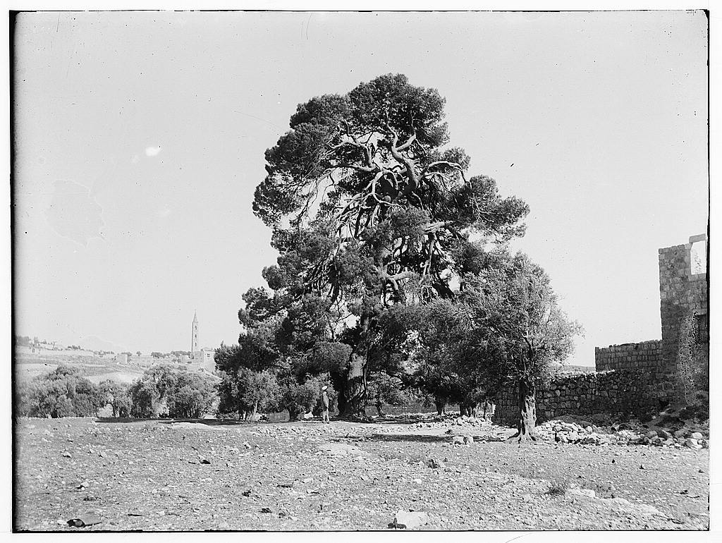 A late 19th century observer describes this area as “a large field on the north-east side of the town, which extends from the town-ditch [rock-hewn Crusader moat at the Old City’s NE corner] to the splendid pine tree near an oil-press worked by the Moslems. This region is known by the general name of Kerm esh Sheikh [the Sheikh’s Vineyard]”