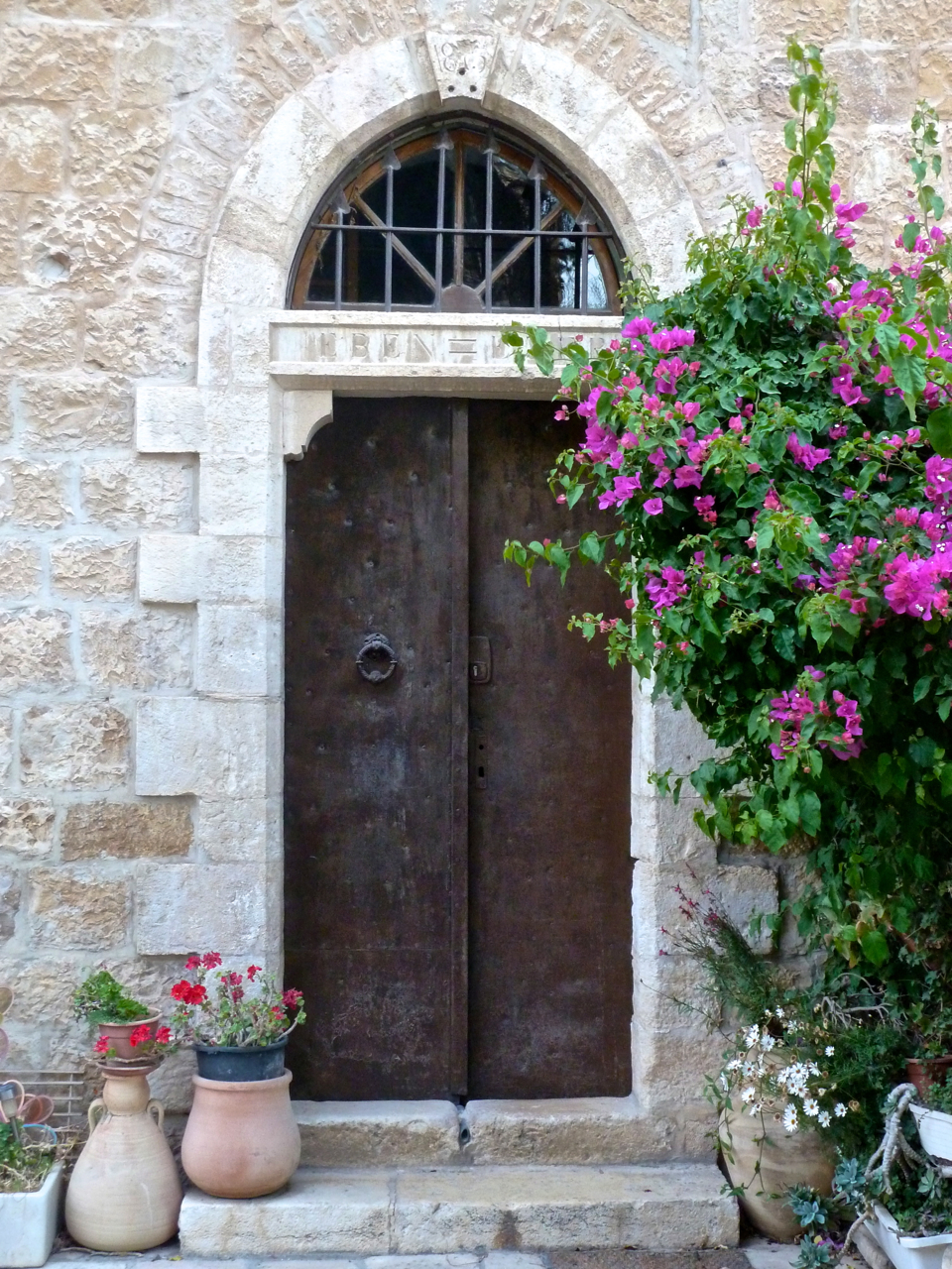 Frank entrance Frank kept 5 dunams for himself and on it he built his house in April 1873. It was the first building to be completed, the home of the miller Matthaus and Gertrude Frank, today #6 Emek Refaim Street. You can see the date on the keystone of the arch above the door and the name EBEN EZER carved in the stone lintel, mentioned in Samuel 7: 11 when God helped the Israelites against the Philistines.