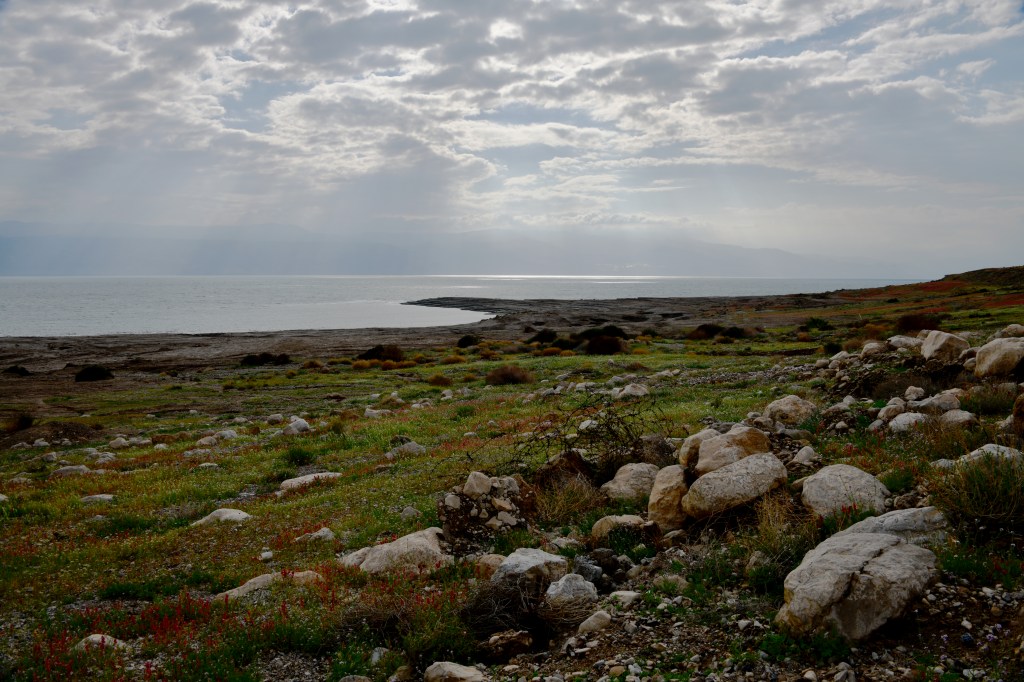 This winter there has been quite a lot of rain and so instead of the carmel colors of the mountains in the Judean desert above the Dead Sea, this year there is a lovely carpet of wildflowers in reds, yellows, purple and white along the shore of the Dead Sea. It’s definitely worth experiencing this exceptional sight. Since I’m also a photographer I’ve taken some pictures that I’ll share with you here.