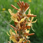 A rosette of grey-green leaves emerges before the flowers, 6 petals with a stamen on each, blooms for 5-6 weeks which is long for bulbs, grows among rocks to protect the bulbs from being dug up by porcupines and other animals.