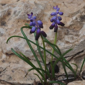 Dark Grape Hyacinth (Muscari commutatum), also bulb, cluster of tiny flowers like jugs that hang upside down to protect the pollen from rain.