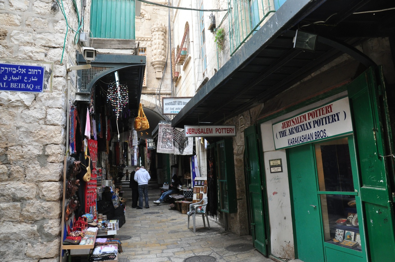 Walking the streets of the Old City your first introduction to Armenian ceramics may be the tiles designed by Mr. Karakashian that display the names of streets in Hebrew, Arabic and English. Please note that much of the painted pottery that you see in the souvenir shops in the Arab market is done in Palestinian workshops in Hebron.