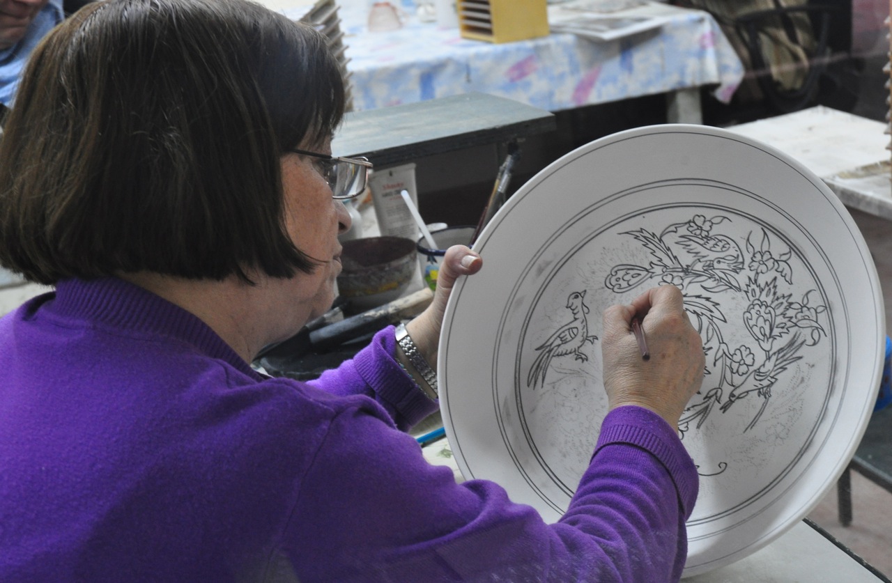 The designs were created by the master painter as drawings on paper. The paper design would be perforated along the lines so that the copyists could transfer them to the ceramics. The copyist-artisans would then paint the outlines in black and then colored glazes would be painted onto the ceramic. When the Balians and Karakashians separated in 1964, the traditional patterns, property of the joint workshop were divided between them.