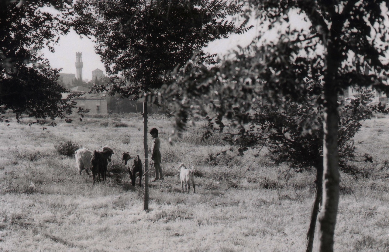 In 1978 while studying in Israel I took some photos of the Old City with a Nikkormat SLR camera using black and white film. One photo in particular I liked quite a lot, a pastoral scene just across from Damascus Gate looking north, of a young Arab boy shepherding four goats in a field. In the distance, framed by two trees is an Italian looking building. Of course, today the field is gone but the building is Barluzzi’s Italian hospital, his first building in Jerusalem.