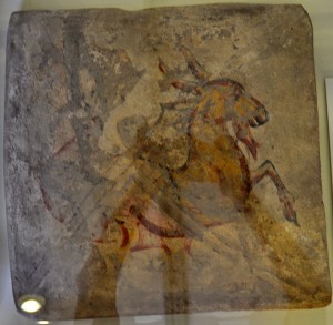 Sixty-three years later, these painted clay tiles and other artifacts have been put on display, including some half dozen ossuaries, mosaics, clay vessels, etc. from excavations in Israel by members of the Archaeology department. The modest museum is open to the public.