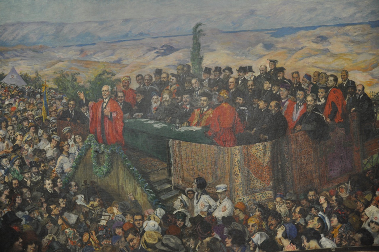 Construction of the campus of the Hebrew University began in 1918 on land purchased from the Gray Hill estate. The dedication ceremony was held in 1925 in the presence of many dignitaries, including Lord Balfour, Viscount Allenby, Sir Herbert Samuel, Chief Rabbi Abraham Isaac Hacohen Kook, the poet Haim Nahman Bialik, Ahad Ha’am, Dr. Chaim Weizmann and many others.