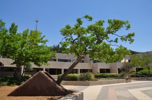 Notice the living sculpture outside of the Sinatra building that commemorates the nine students killed by a bomb left in the university cafeteria in July 2002, a tree growing out of the ground at an angle, by Israeli sculptor, Ran Morin. The Tilted Tree signifies humankind’s ability to withstand even the most disruptive shocks and to continue to grow upwards.