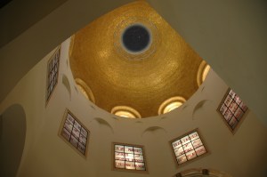 He chose the octagonal shape to match the eight beatitudes from the Sermon on the Mount (Matthew 5:1-5) and on the eight stained glass windows beneath the dome are verses from the Sermon.