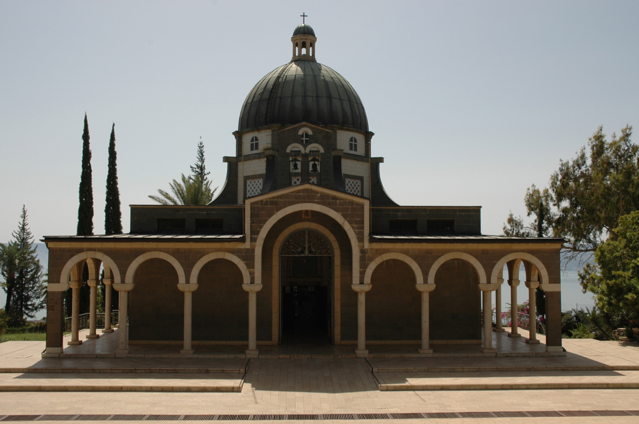 Another church that is octagon-shaped and crowned by a copper dome though enclosed in a rectangular envelope is the church on the Mount of Beatitudes. The church is from 1938 and was designed by the Italian architect Antonio Barluzzi in neo-Renaissance (Byzantine) style.