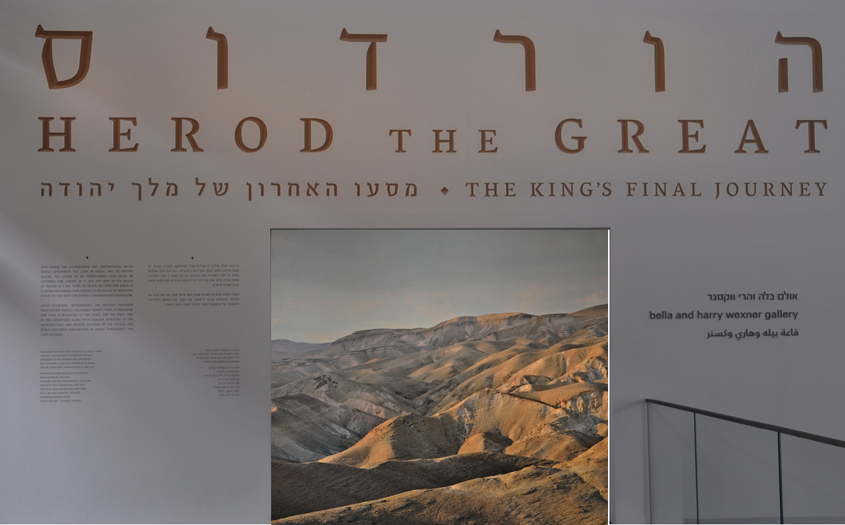 The first image at the entrance to the Herod exhibit at the Israel museum opening today is neither architecture or artifacts, but the Judean desert – the site where Herod built his monuments is important.