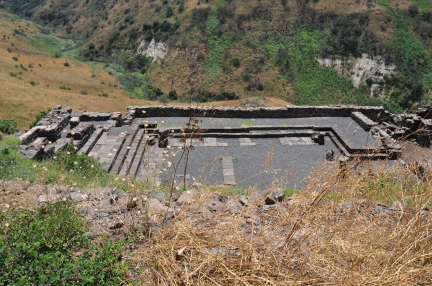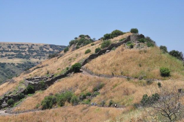 The ancient city is situated on a steep hill (a horst like Masada) shaped like a camel’s hump, from which it derives its name (gamal means ‘camel’ in Hebrew). Jews inhabited it from the last quarter of the 2nd century BCE, and it was annexed to the Hasmonean state under Alexander Jannaeus in about 81BCE. Josephus Flavius, commander of the Galilee during the Jewish Revolt against Rome fortified Gamla as the main stronghold on the Golan. It’s fascinating to compare Gamla, a city and one of the first to stand against Vespasian’s legions with Masada, a fortress and the last to fall to the Romans.