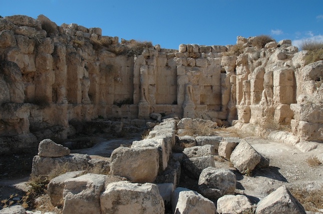 In guiding, I’ve had a number of tourists ask me what the curved cuts in the stone in the lower part of the pilasters (between the niches along the walls, 2 in the end, 3 on each side) were used for. If this was designed as a nymphaeum (either in the time of Herod or by later Roman governors) perhaps the channels were used for water. The course and building are just south of the large pool.