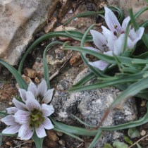 A rosette of grey-green leaves emerges before the flowers, 6 petals with a stamen on each, blooms for 5-6 weeks which is long for bulbs, grows among rocks to protect the bulbs from being dug up by porcupines and other animals.