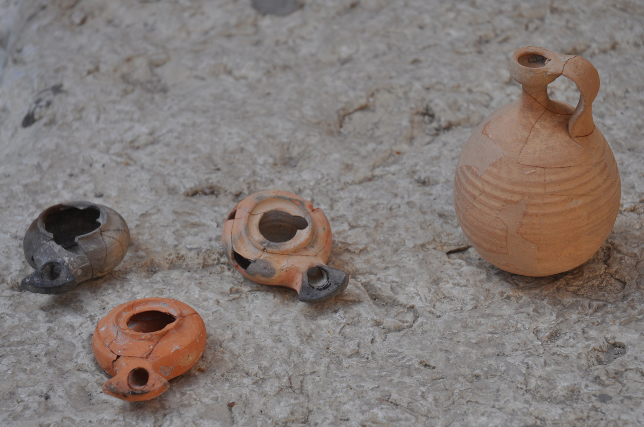 Some clay oil lamps and a small pottery jug typical of the Second Temple period were found.
