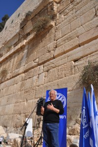 Just came back from a press conference with Ronny Reich, archaeologist and professor at Haifa University. Probably every guide talks about the Western Wall, the supporting wall of the Temple Mount built by King Herod in 22BCE. According to the historian Josephus, Herod elongated the square Hasmonean platform (250 meters by 250m) by rebuilding new northern, western and southern supporting walls. The eastern wall was extended and the “seam” between the earlier Hasmonean wall and Herod’s can be seen near the south-eastern corner. Along the western wall Herod designed a main street (Ronnie Reich calls it the original Wall Street, the Palestinians probably call it occupied) and a vault supporting a large staircase crossing over the street and leading to the Royal Stoa, a building 288 meters long with 160 columns (it takes 3 people with arms extended to go around a single column). When Herod moved the western wall he had to move some residences that were in the way, at the bottom of the slope from the Western Hill. These buildings were destroyed but the basements, underground cisterns and mikvaot (ritual baths) were just filled in with debris/earth. One mikva directly under the path of the planned western wall, was filled in and covered with 3 large stones. In clearing out the drainage channel under Robinson’s Arch, the mikva was discovered under the Herodian stones of the western wall.