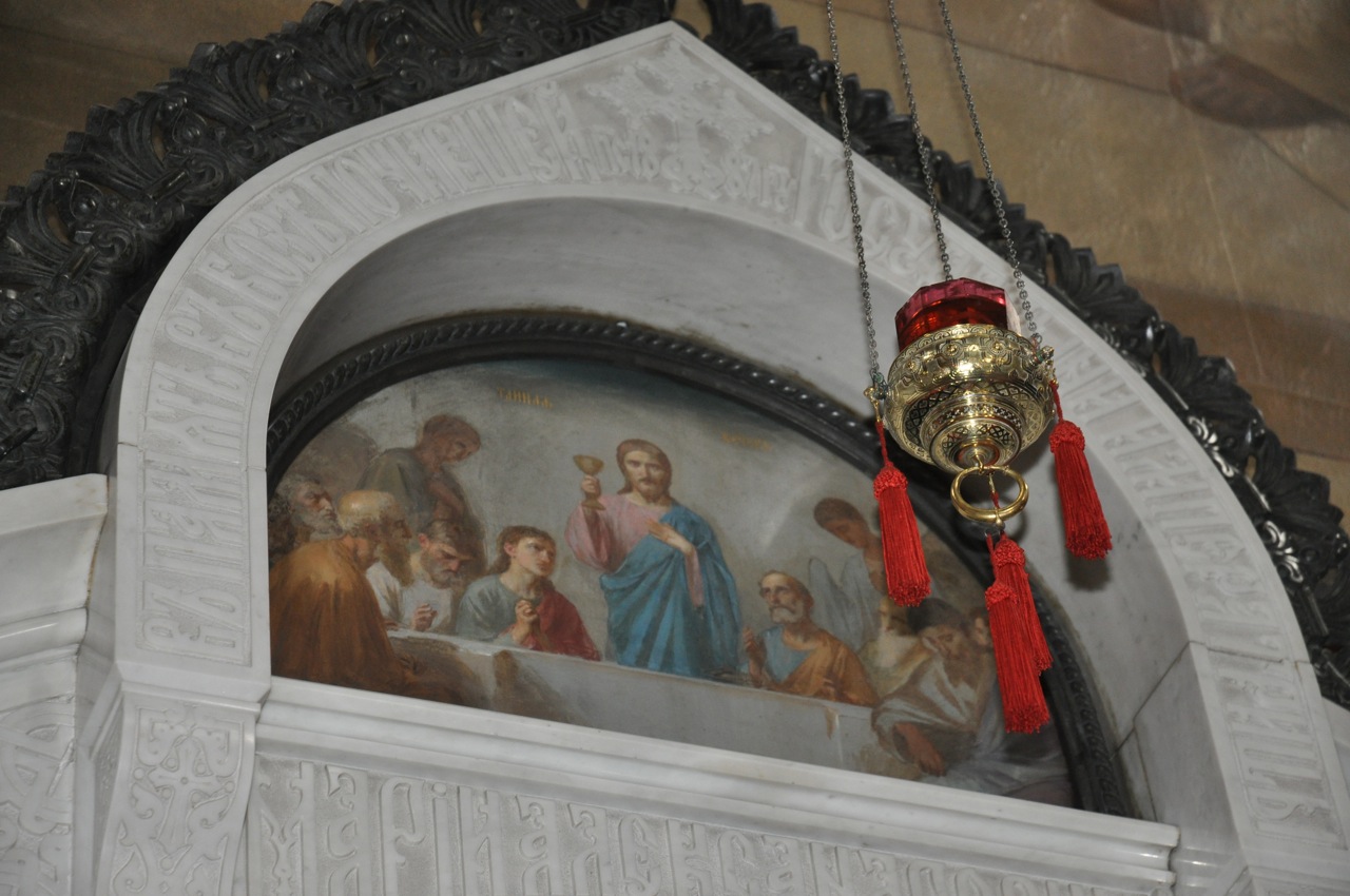 In the plans, besides the hotel, a church or Spirituality Center is being built called “Duc in altum” based on the words from Luke 5:4 that Pope John Paul II chose, “Put out into the deep” to say, that with God’s help, anything and everything can be accomplished. The building is in the shape of an octagon which is usual for a martyrium as opposed to the traditional Byzantine basilica (rectangular, central nave with apse, and two or more aisles). Not only the shape is reminiscent of early Orthodox churches but the interior of the main chapel is decorated with paintings of holy figures like in an Orthodox church, in the spirit of ecumenism. The area of the altar has a replica of a wooden boat so that as you sit in the chapel, you face the boat with a view of the lake behind it.