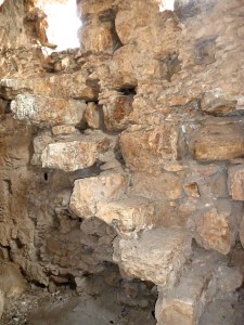 There is a wall of dressed stones up the hill near the stepped pyramid and nearby part of a niche which leads scholars to identify the building as a 4th century synagogue.