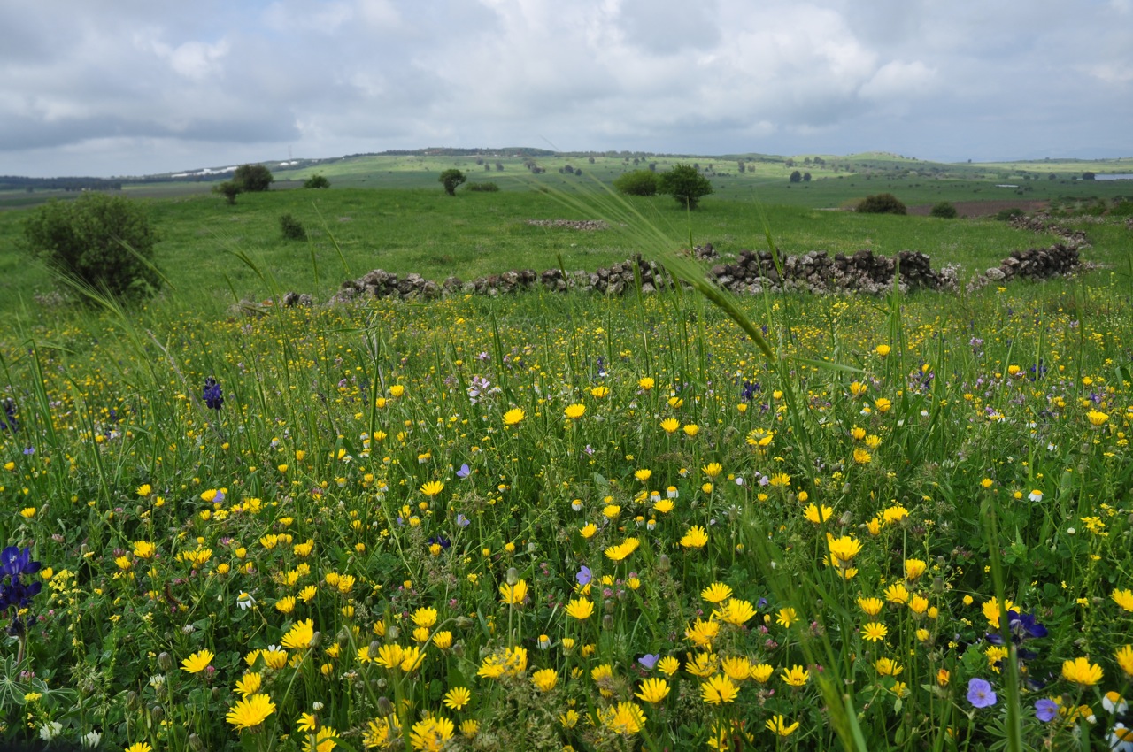 Because of the rains we saw two flowers, the tiny purple Grape Hyacinth, in Hebrew, Kadan and bunches of white Desert Bulbs, Bezalziya.
